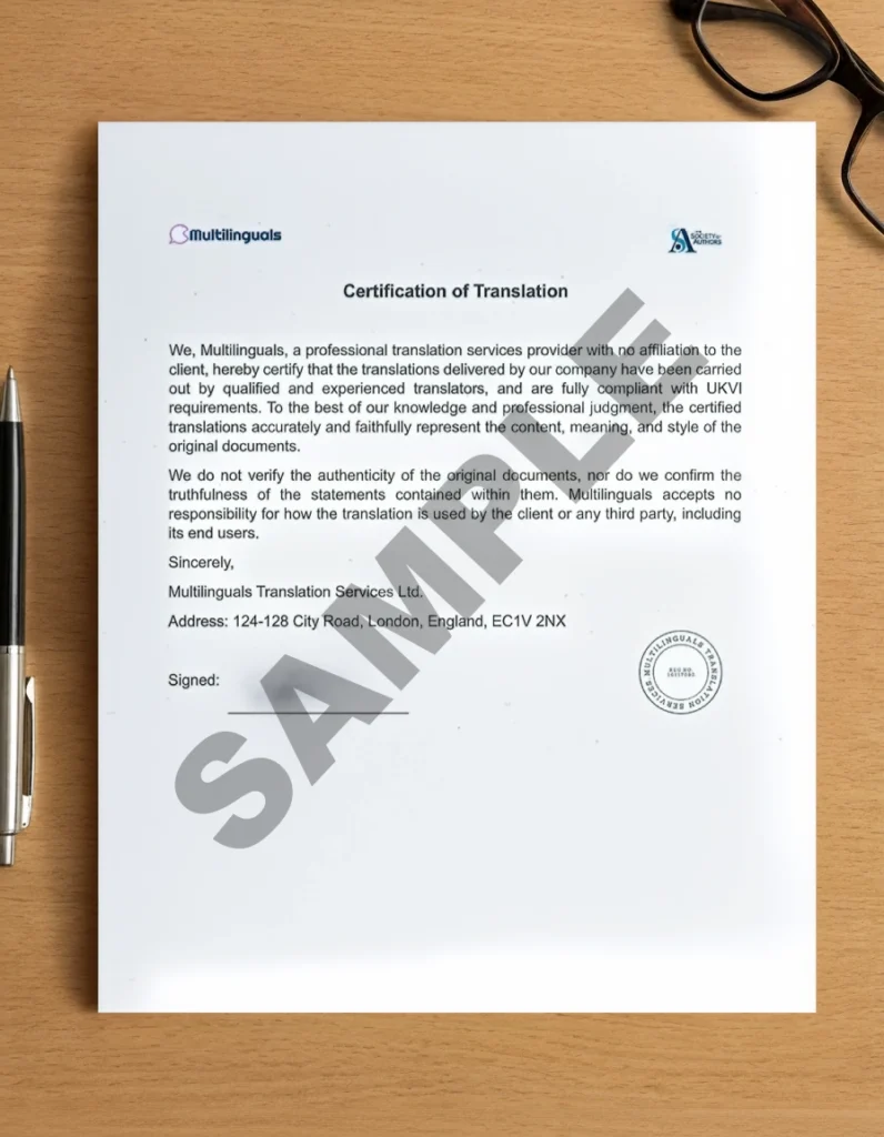 Important: UKVI does not accept casual translations by friends or online tools. Only translations from qualified translators or certified translation companies are accepted.
